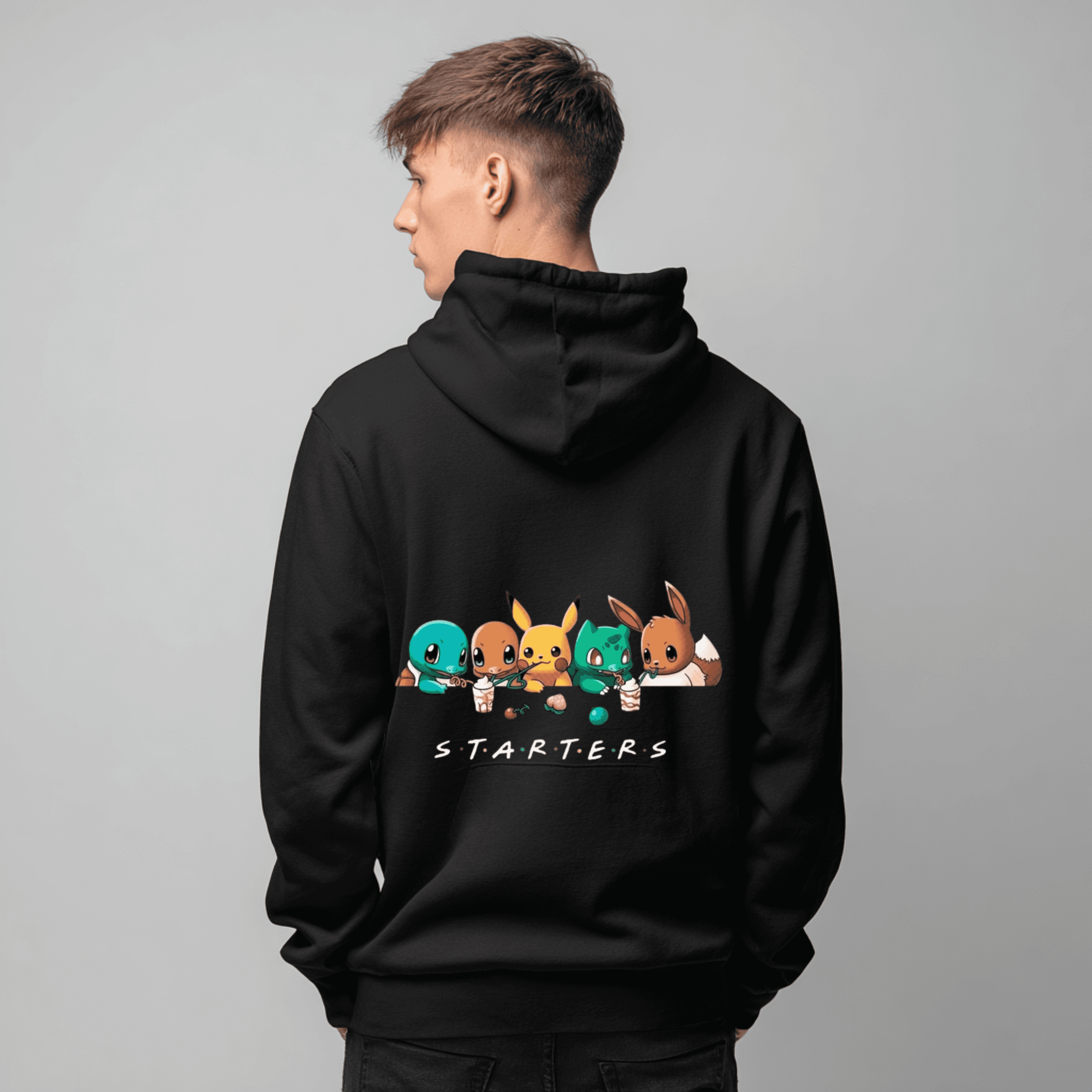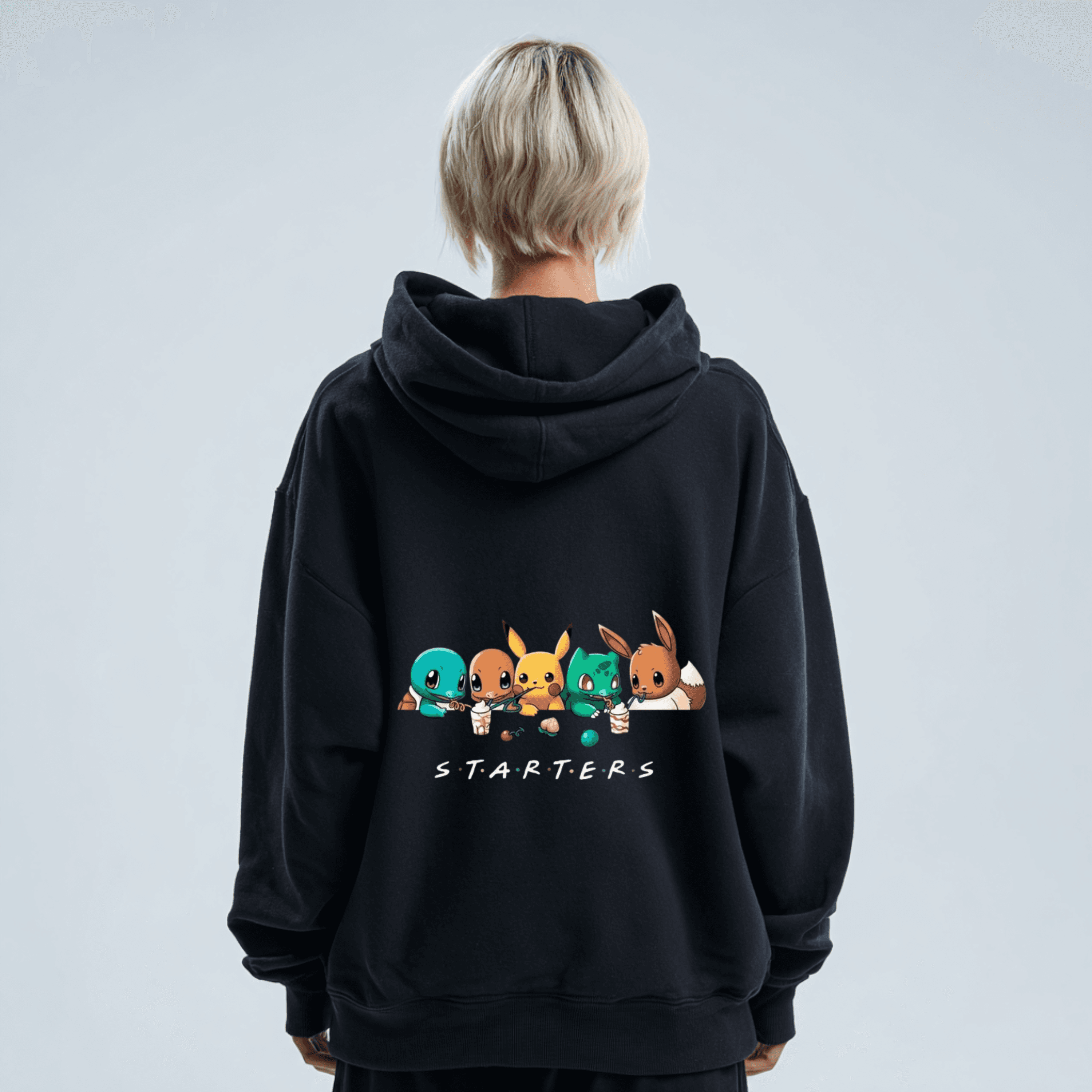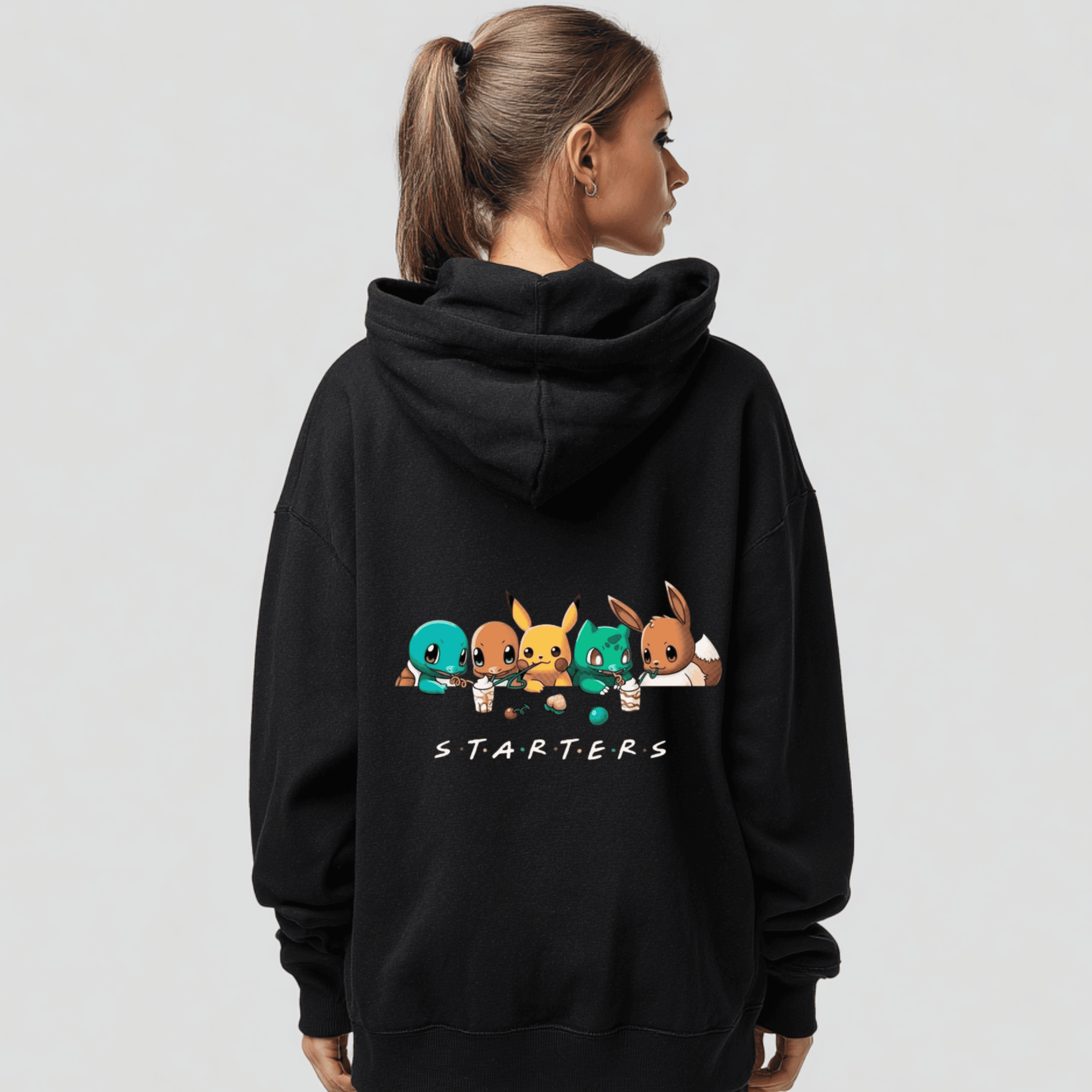 Bring nostalgia to your streetwear with our Starters Pokémon Hoodie, featuring adorable artwork of Squirtle, Charmander, Pikachu, Bulbasaur, and Eevee lined up under the bold S.T.A.R.T.E.R.S text. If you're searching for a Gen 1 starter Pokémon hoodie, Pokémon starter sweatshirt, or anime streetwear hoodie, this hoodie delivers on style and fandom from the first word.