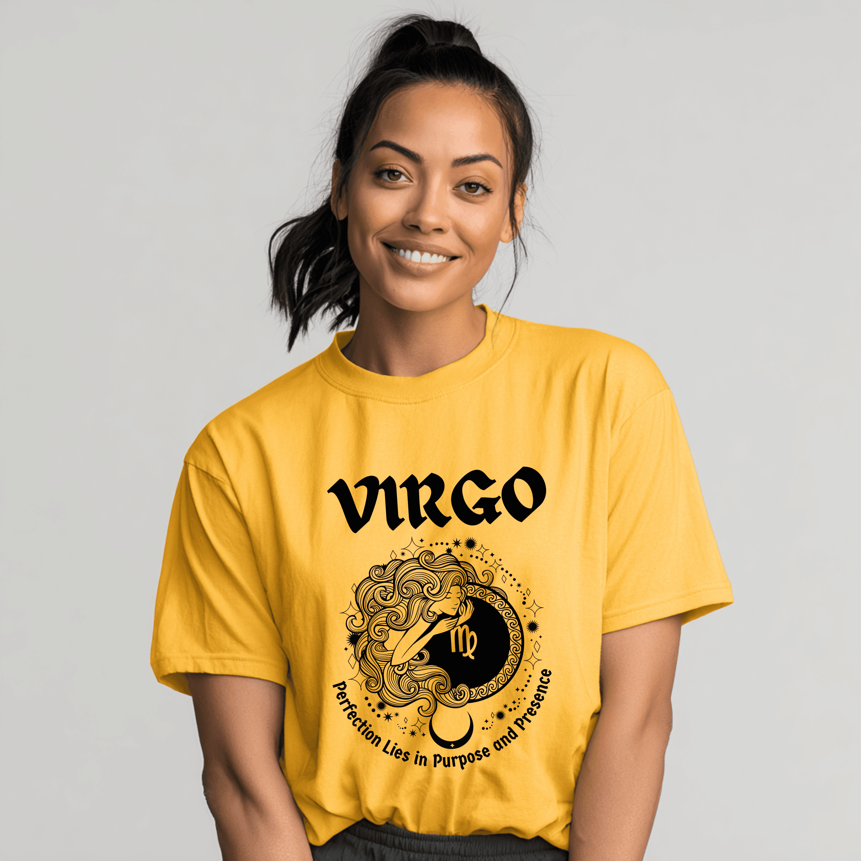 Celebrate your Virgo nature with this astrology tee. Soft fabric, maiden-inspired artwork—perfect gift for Virgo birthdays.